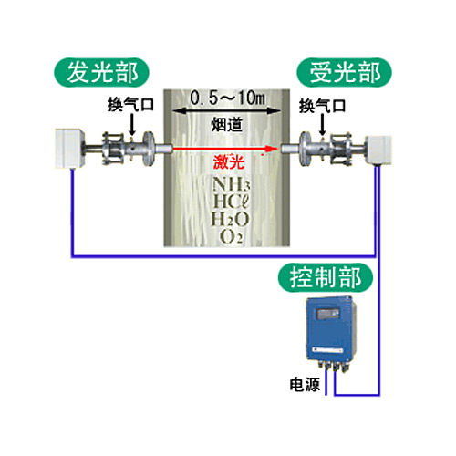 >本產(chǎn)品是將受光部和發(fā)光部直接安裝在煙道中,可連續(xù)測量排氣中的HCl、NH3、O2、CO、CO2、CH4氣體濃度的激光式氣體分析儀。