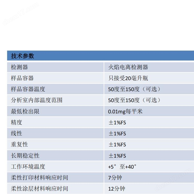 NIRA >這個儀器設(shè)備是組裝在一個金屬盒體內(nèi)的, 它可以放在桌子上,或者距離印刷機(jī)數(shù)米的工作臺上(需要的外部配套有電源,壓縮空氣,以及供應(yīng)氣相色譜儀的超純氫氣和超純空氣)儀器有以下部分組成: 毛細(xì)色譜柱50米乘以0.53 打印機(jī) 50個樣本容器(瓶)的成套設(shè)備 配件: 精密切割的100平方厘米樣本 樣品容器附加工具 用于校準(zhǔn)的標(biāo)準(zhǔn)物質(zhì) 標(biāo)準(zhǔn)物質(zhì)進(jìn)樣器(5μl) 可選配件: 空氣凈化器